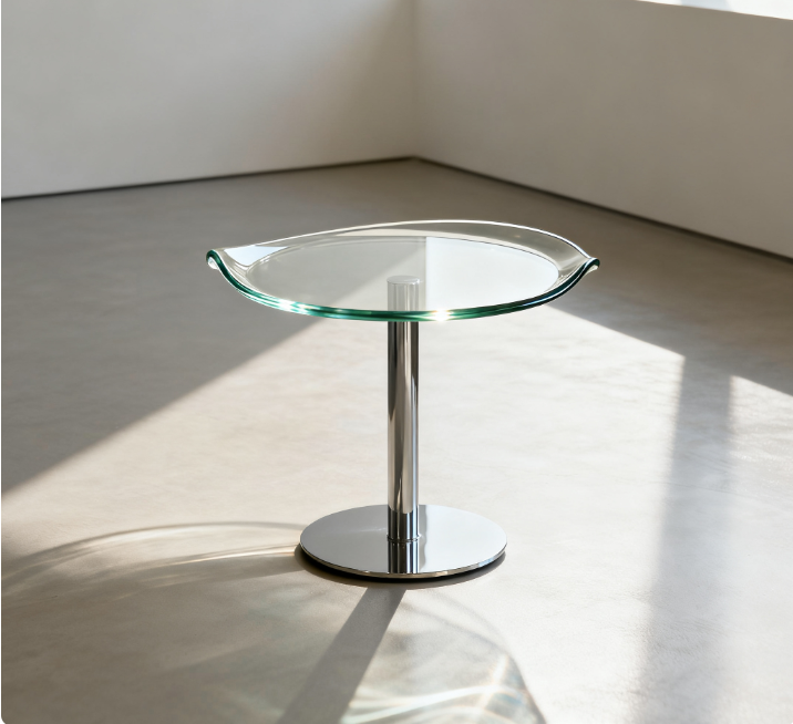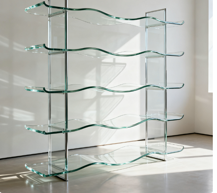 Custom-formed glass solutions for interior, furniture, and decorative applications.